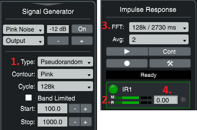 If you are able to use Smaart's signal generator as your stimulus signal source, then period-matched pseudorandom noise is a good all-around choice for signal type. To turn on this option, open the signal generator control panel, select Pink Noise as the signal type, then tick the boxes labeled Pseudorandom and Drop IR Data Window.