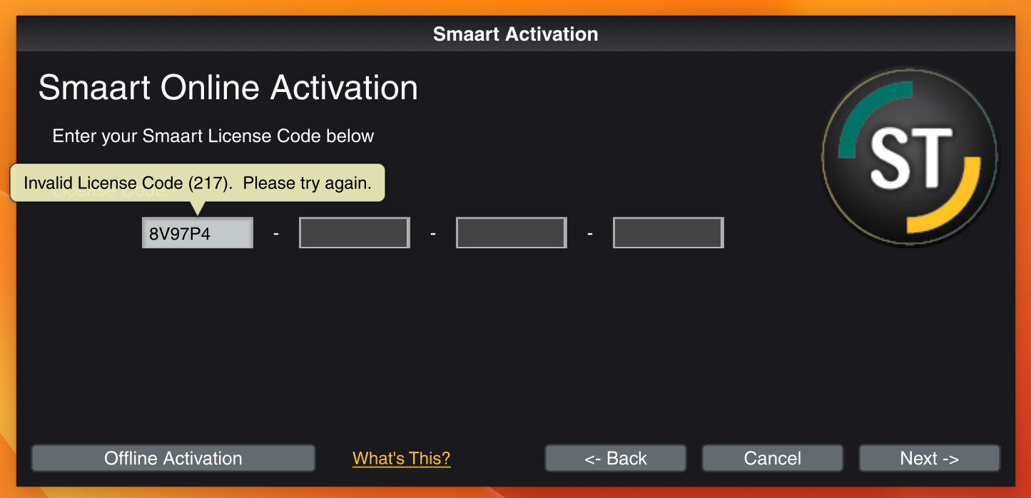 Error 217 occurs when attempting to re-activate a computer that was manually removed by a Smaart Support Technician or via the machine ID cancellation form in your license management account.